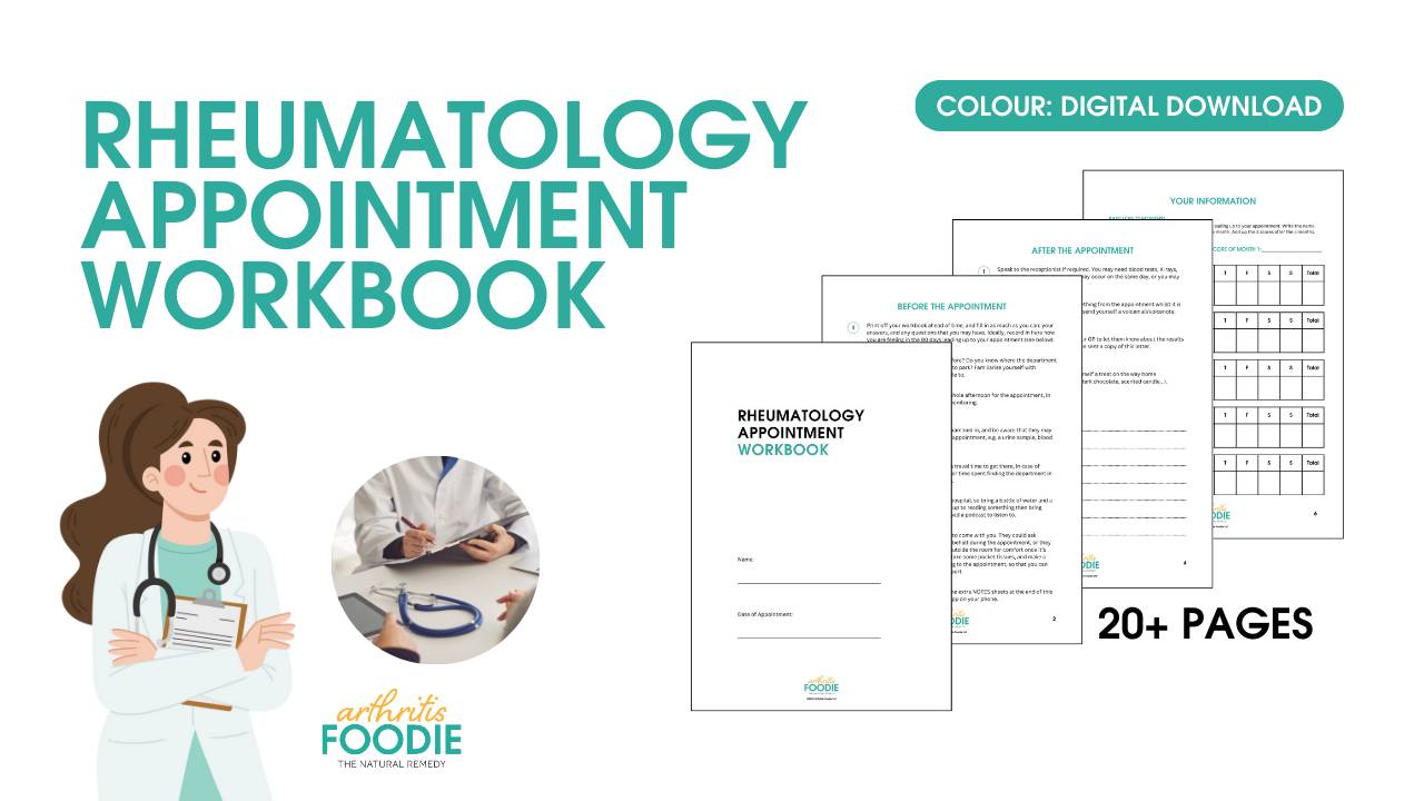 This Rheumatology Appointment Workbook has everything you need to bring to your appointment – just simply print it out, or open it on a digital device (phone, tablet) – read, fill in, and take it with you.